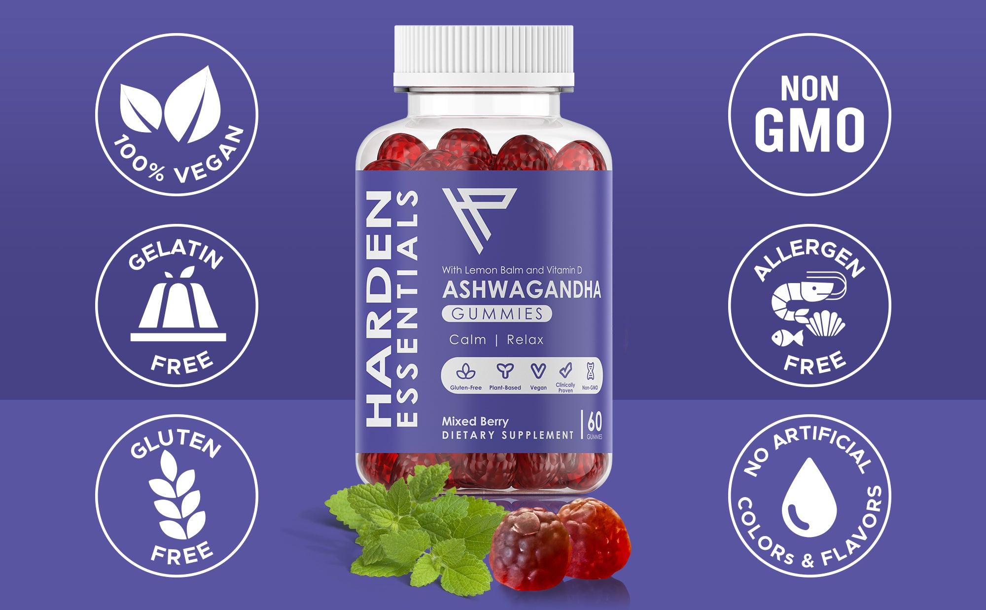KSM-66 Ashwagandha Gummies w/ Lemon Balm & Vitamin D (Max Strength 750mg per Gummy) - Herbal Vegan & Gluten Free - Calm Mood Relaxation - Support Stress - Gummies for Adults Kids Women Men (60 Count)